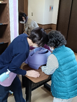 冬季は感染症が非常に流行しやすいです。家庭内で感染が拡がらないようにするためにはどうすればよいか当院の感染管理認定看護師に講義をしていただき、感染症の基礎を学びました。特殊な塗料とブラックライトを使用した手洗いチェックは大盛り上がりでした。